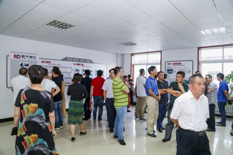 會議結(jié)束后,全體與會代表乘坐大巴來到山東哈大電氣有限公司八角工業(yè)園廠區(qū)考察指導(dǎo),圖為與會代表正在榮譽資質(zhì)展示廳了解哈大電氣的發(fā)展沿革、資質(zhì)、榮譽、典型工程等基本情況。